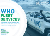WHO is implementing the WHO Fleet Services (WFS) initiative to offer a 360° fleet management solution. WFS aims to provide WHO offices with appropriate, cleaner, cost-effective and safer vehicles to support optimum programme delivery.